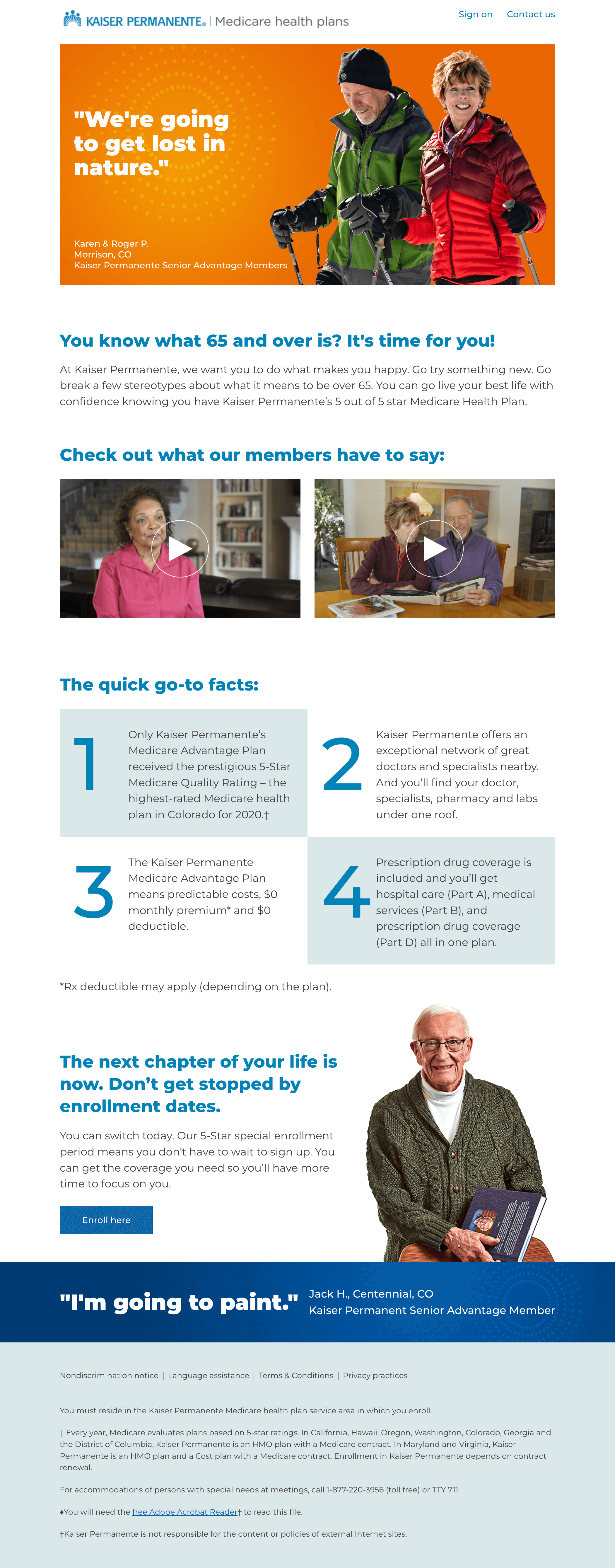 Kaiser Permanente was looking to break away from its national marketing campaign to better localize the message that it was the only Medicare Advantage plan provider in Colorado that received a 5-Star rating in 2020. This was an especially important message at a time when we were living through a global pandemic and the world was in need of better healthcare.